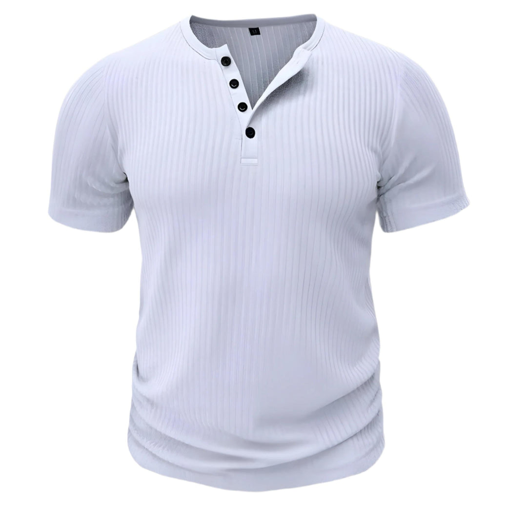 Men's Ribbed Henley T-Shirt | Short Sleeve | Stretch Slim Fit